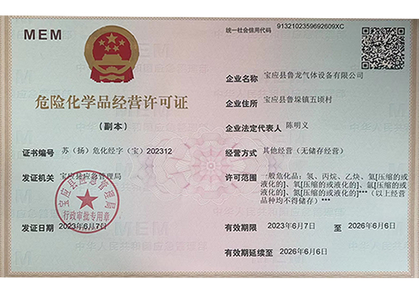 經(jīng)營許可范圍:一般危化品 (充裝):氬[壓縮的或液化的]、氧[壓縮的或液化的]、氮[壓縮的或液化的]、二氧化碳[壓縮的或液化的]一般;罚罕、乙炔、氦[壓縮的或液化的]、